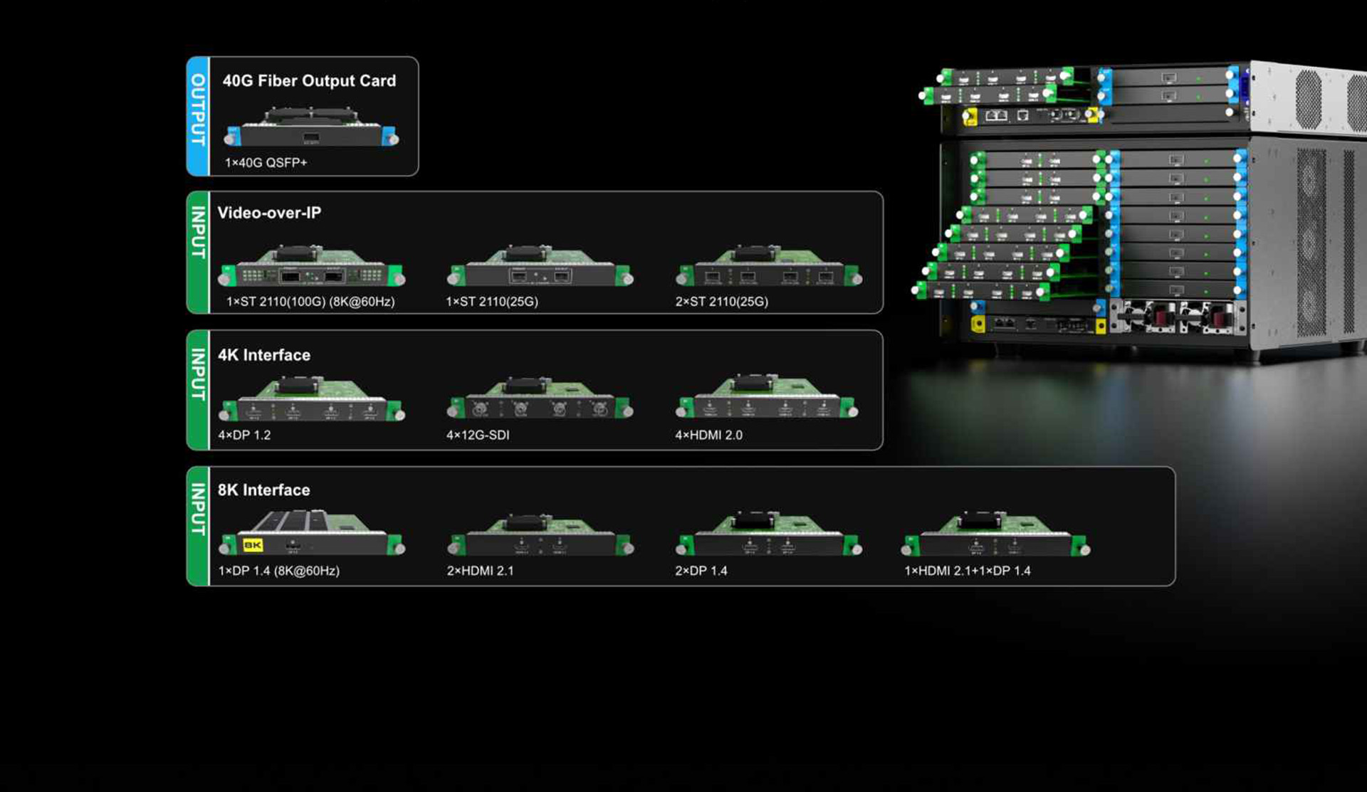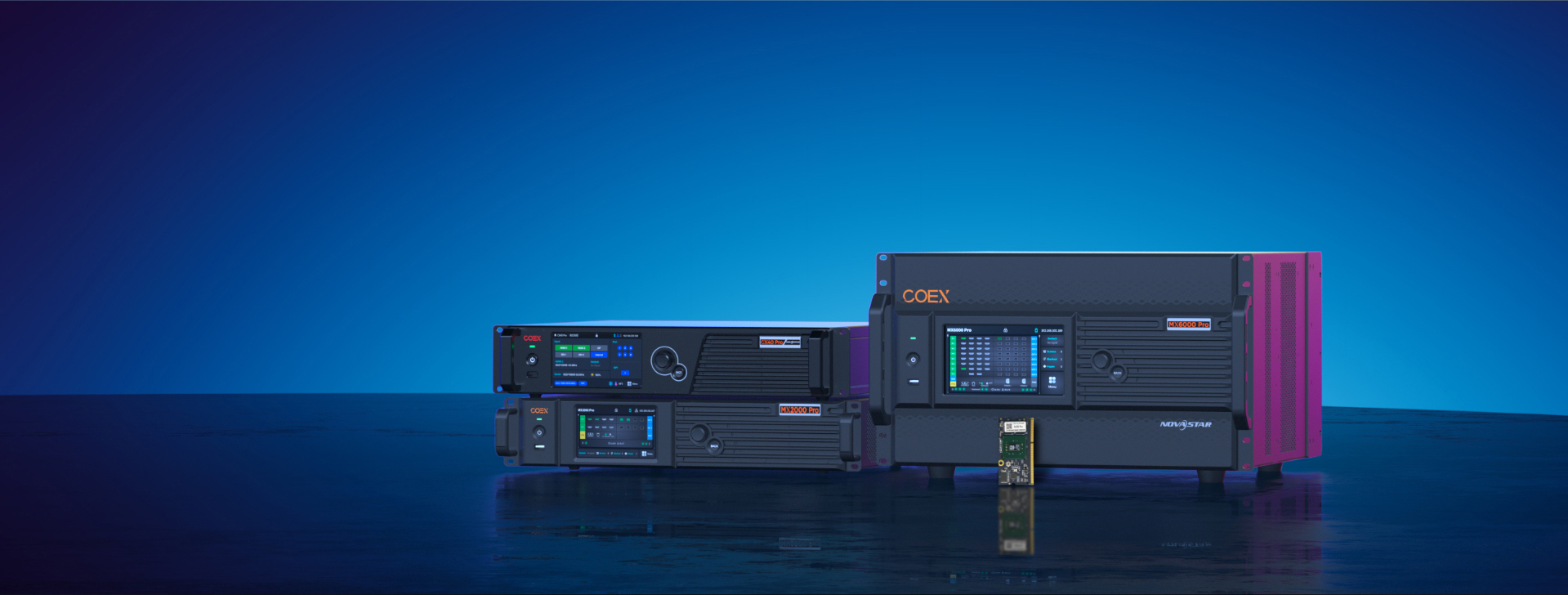 A single receiving card drives 512×1024 pixels, enabling single-card cabinet configuration down to P0.6.
