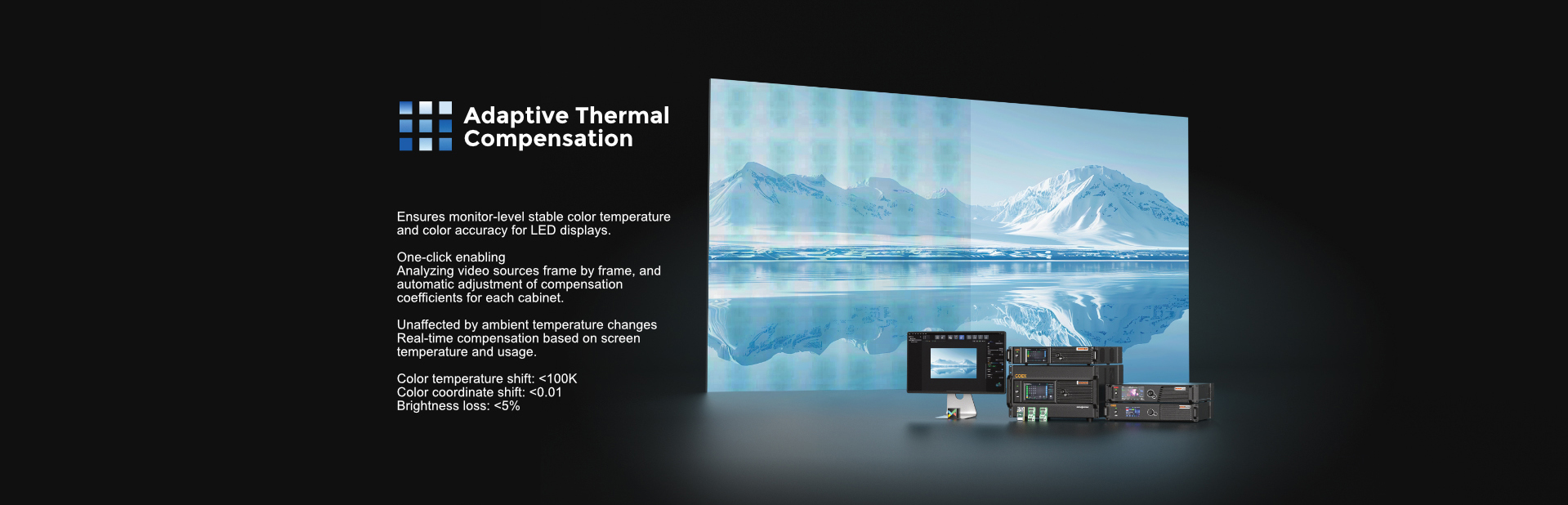 The XA50 Pro features a comprehensive heat dissipation design guide, enabling simplified thermal management for LED cabinets while improving heat diffusion efficiency and reducing operating temperatures.