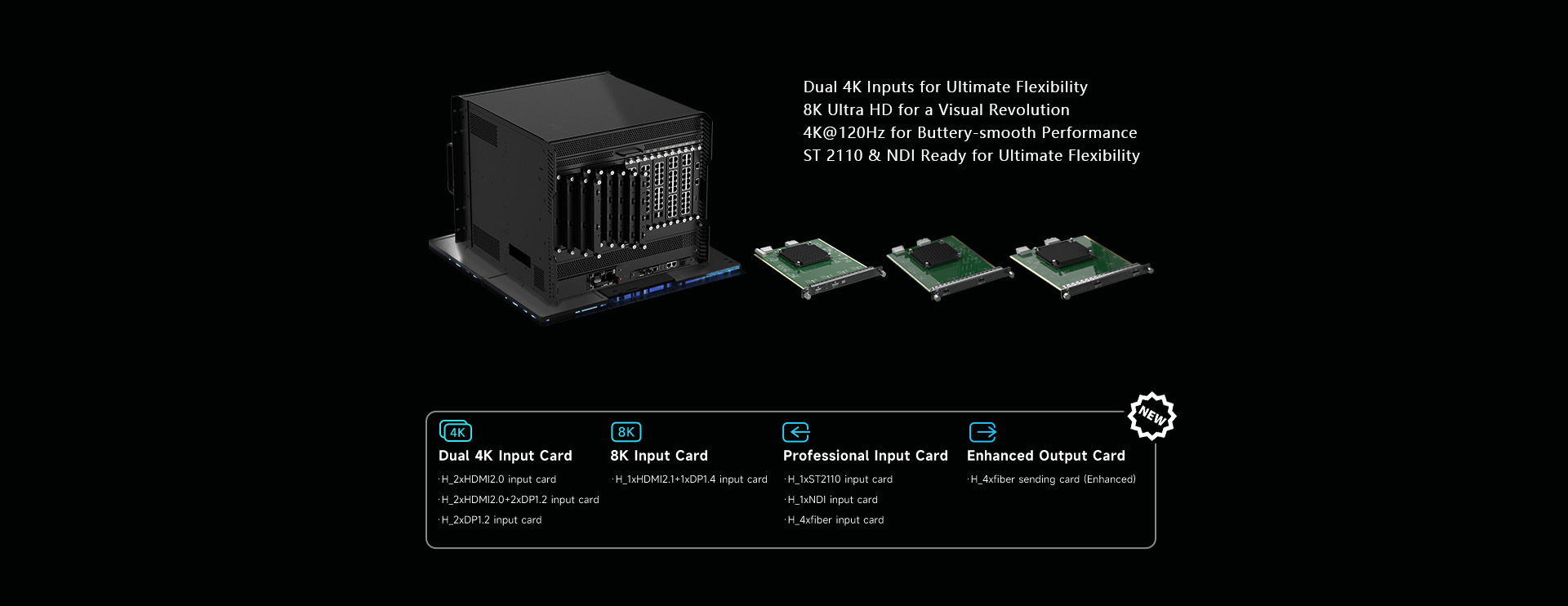transmitter card, the entire system can support up to 520 million pixels, greatly